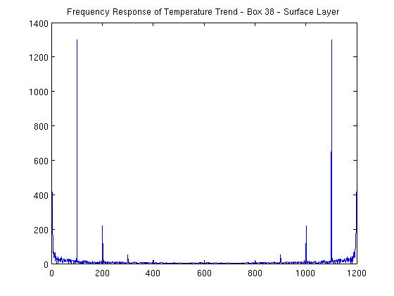 The following figure shows the typical frequency response of the temperature trend data in a surface box.
