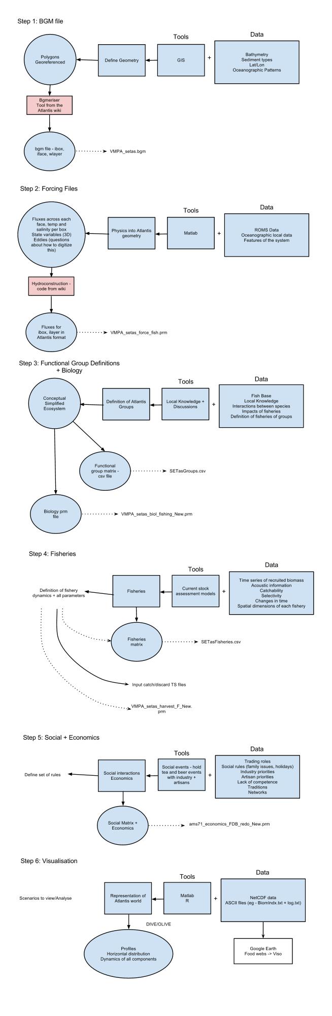 Atlantis Steps- Sketch of Atlantis model development steps - drawn up by Carolina Parada from INPESCA.