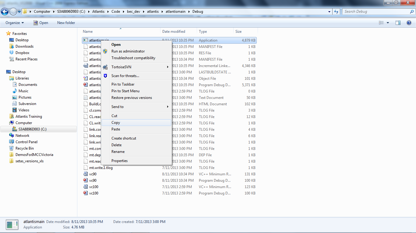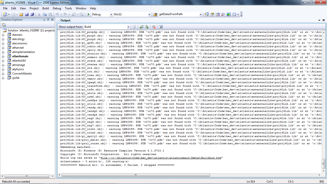 The above step will have built you a new atlantismain.exe executable in the atlantismain/Debug folder.