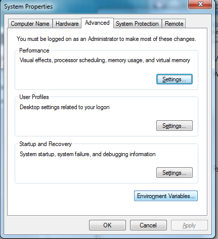 Click on the ‘Advanced’ tab and click the ‘Environment Settings’.