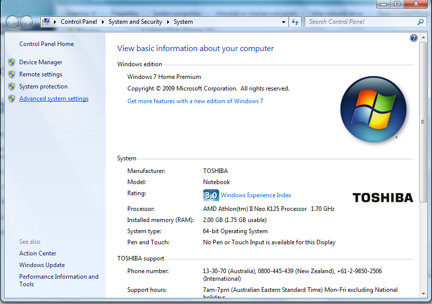 In Windows Explorer right click on the Computer folder and select ‘Properties’. In some of the older instances of Windows (e.g. XP) you need to go to Control Panel and chose System instead.