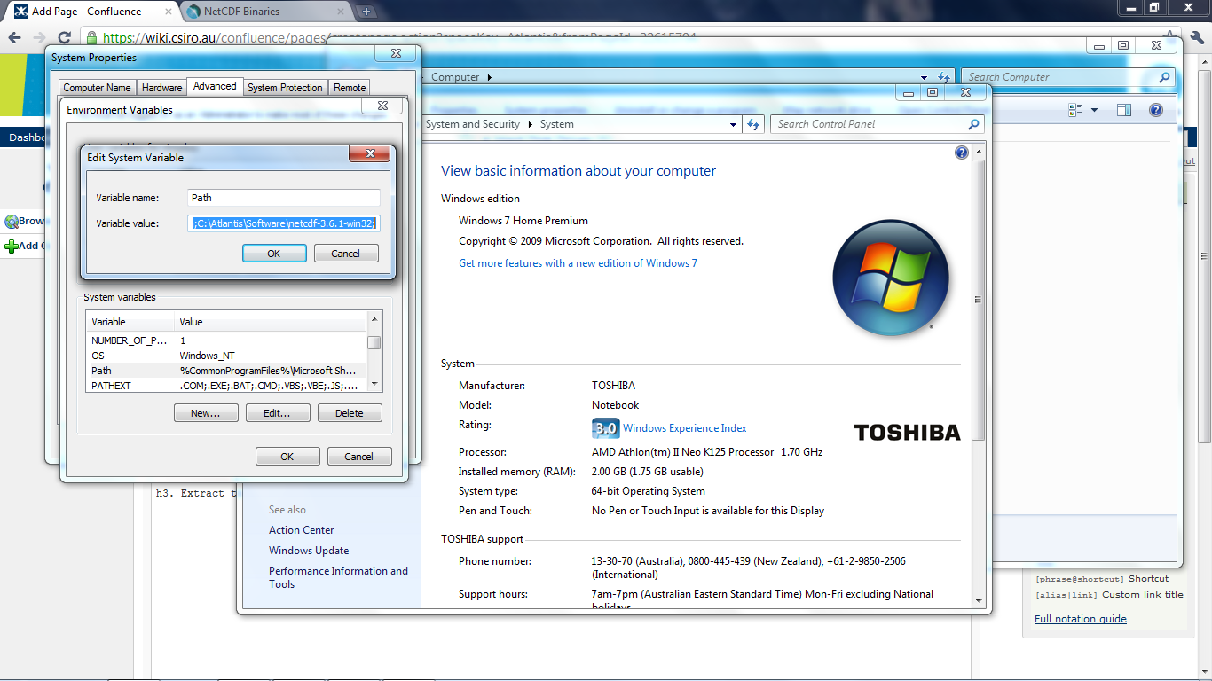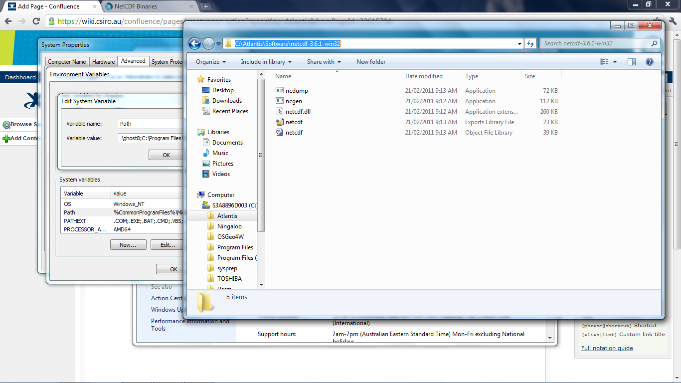 Scroll to the end of the list and paste the path of the extract NetCDF tools. In this case we extracted the NetCDF tools to ‘C:.1-win32’. Make sure you put a ‘;’ after the last item in the list - the PATH variable is a list of folder locations separated by ‘;’.