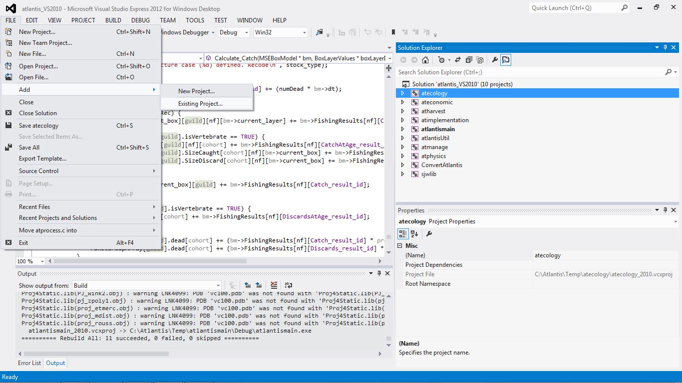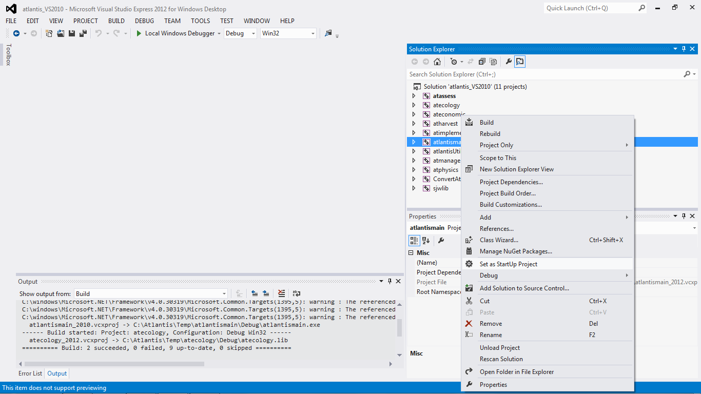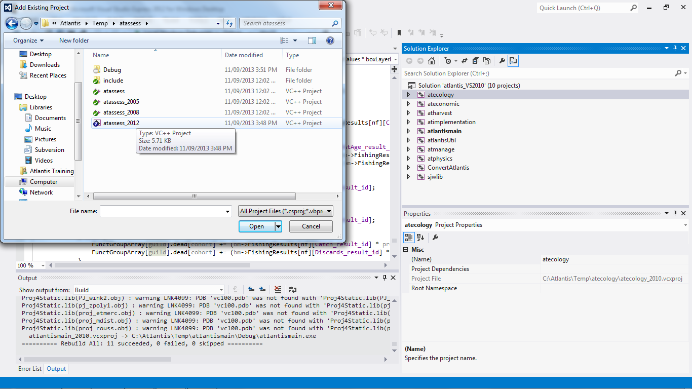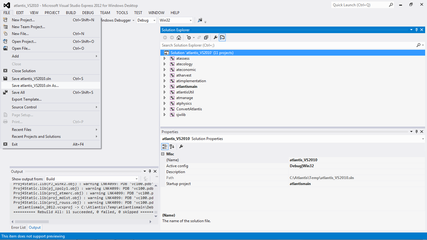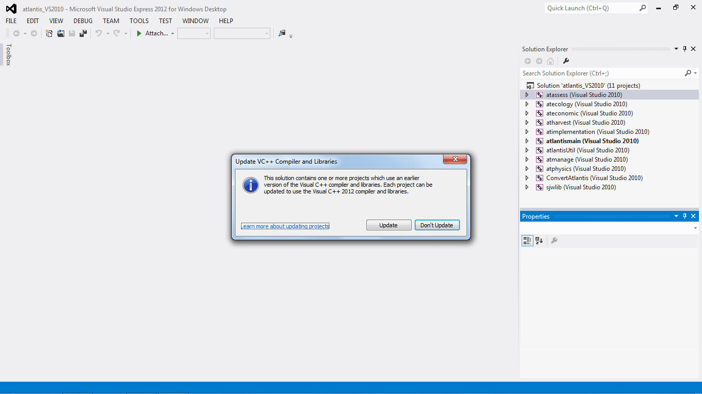 Download the version that talks about including the C++ compilers. Originally this would have been a separate C++ version but as of 2012 this seems to be a Windows Desktop version. Follow usual steps to install.Check out a clean copy of Atlantis into a temporary folder. This ensures we can revert converted files later.