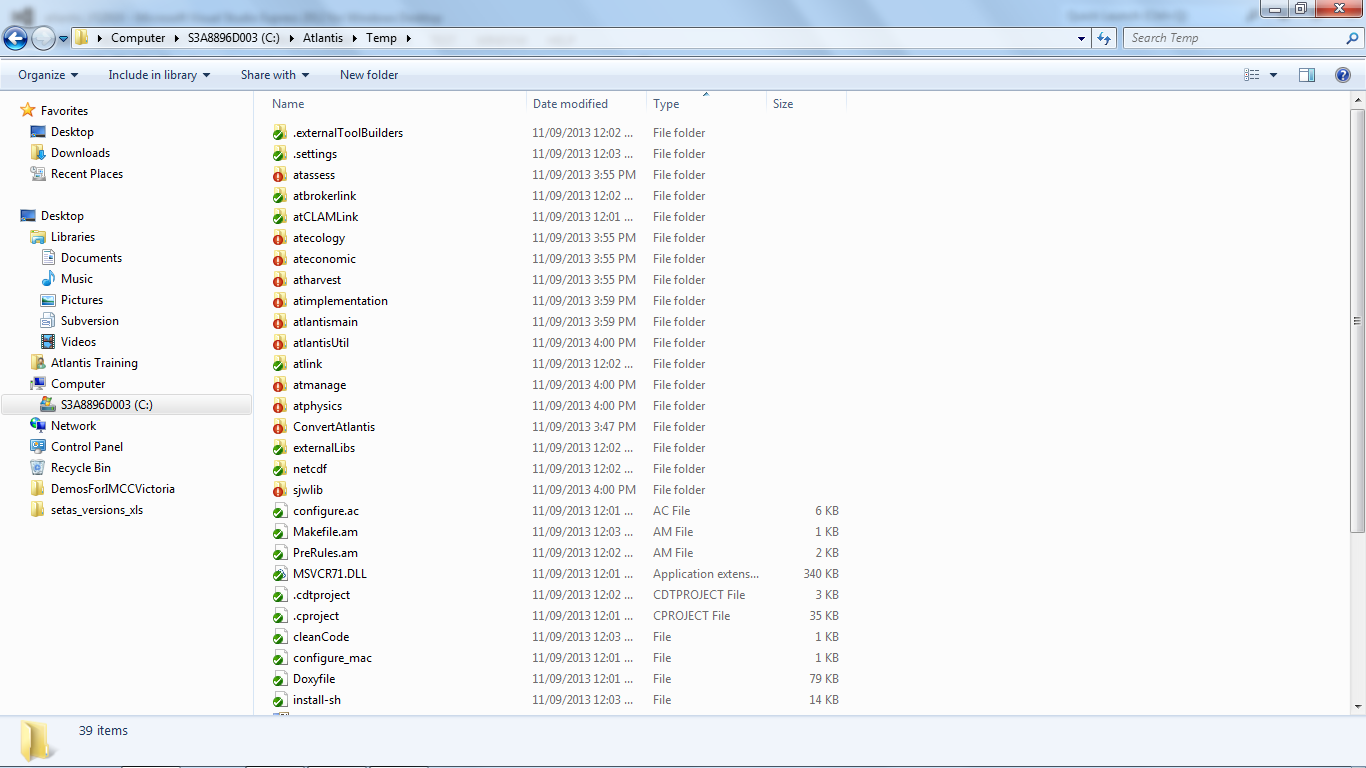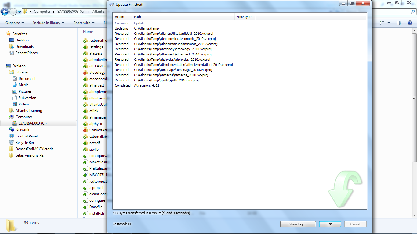 Now have a look in Windows Explorer. You will see all the folders that have changed. Don’t worry about the atlink, atCLAMLink or atbrokerlink folders. These will be updated are they are needed and these are not included in the normal Atlantis compile.