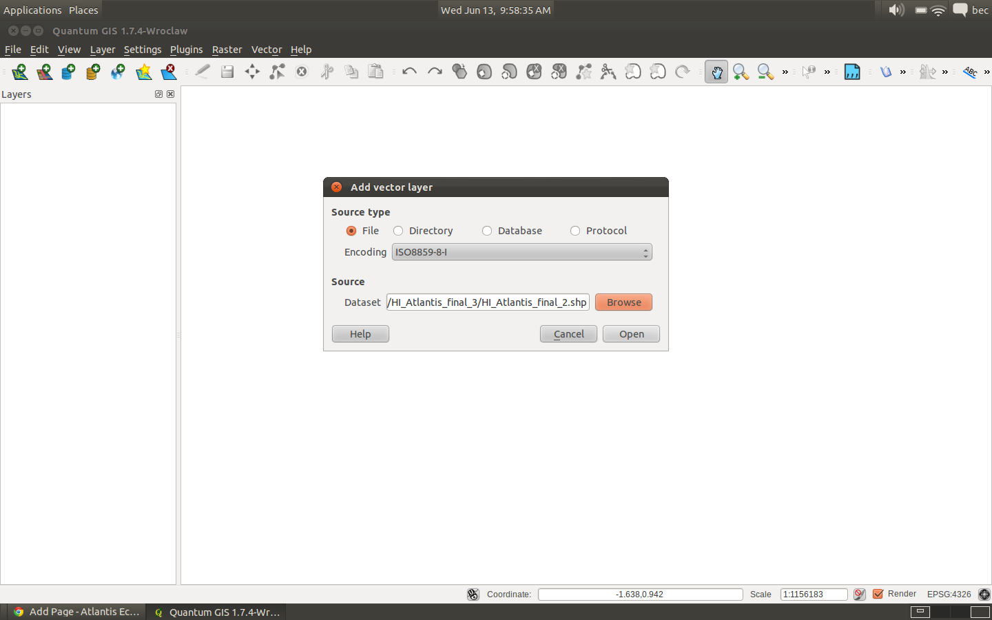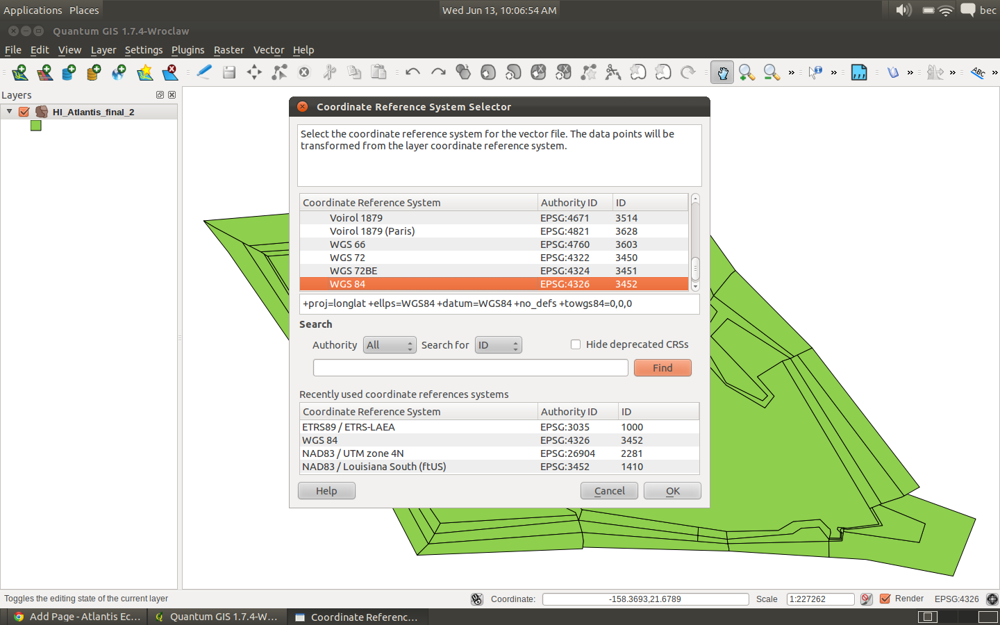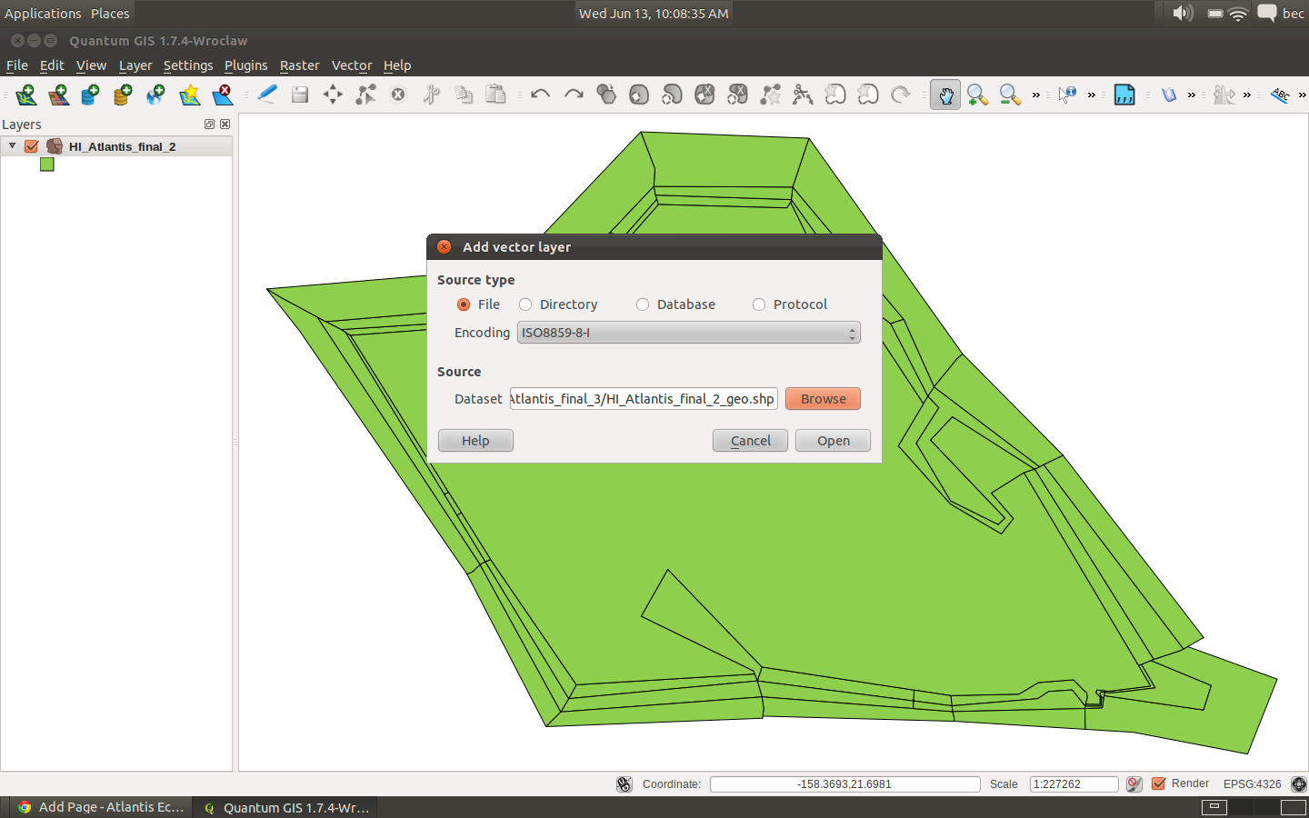 Remember to use a meaningful shapefile name - here we are calling the new shapefile HI_Atlantis_final_geo_0p0001.shp