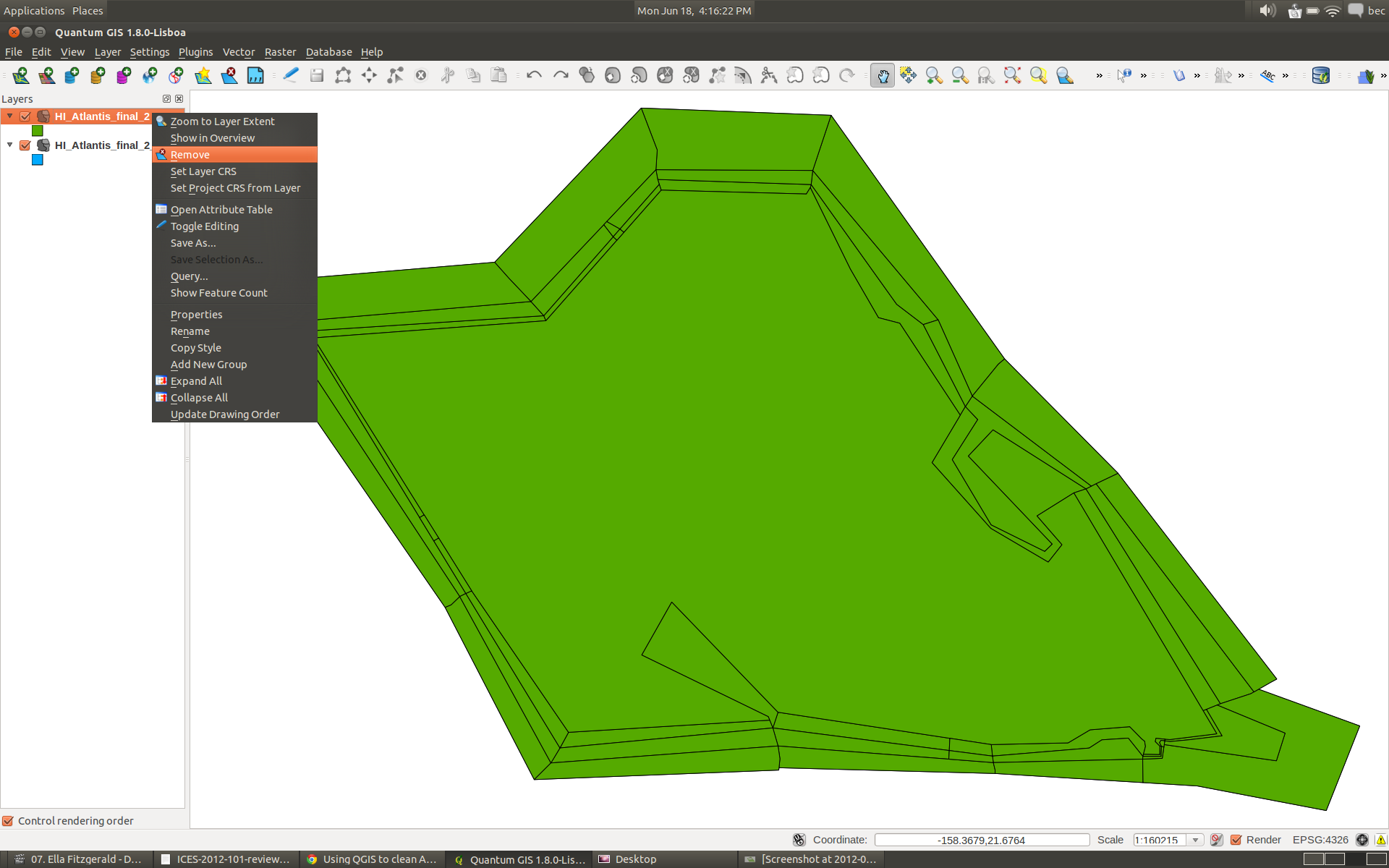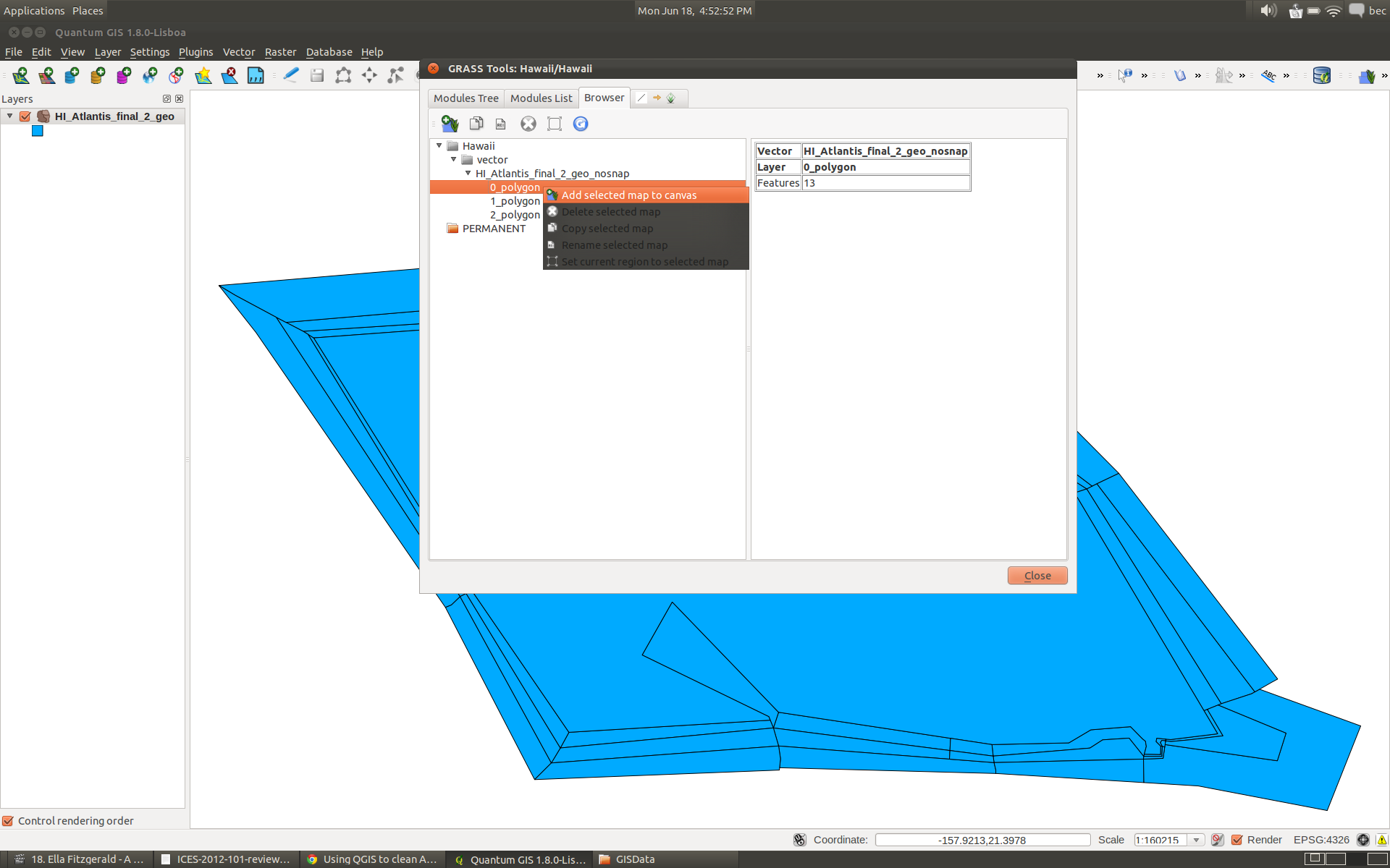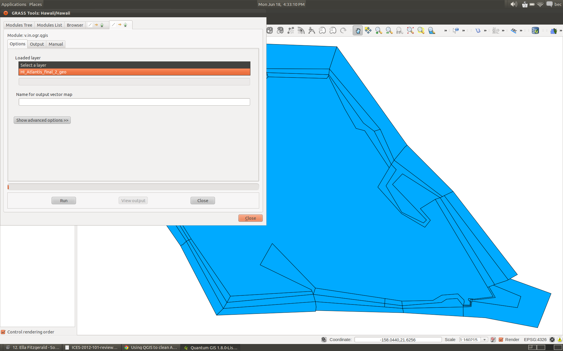 In this example the magic snapping tolerance is 0.0001. Once you are done view the add the newly created map (HI_Atlantis_final_2_geo_0p0001) to the canvas ready for export.
