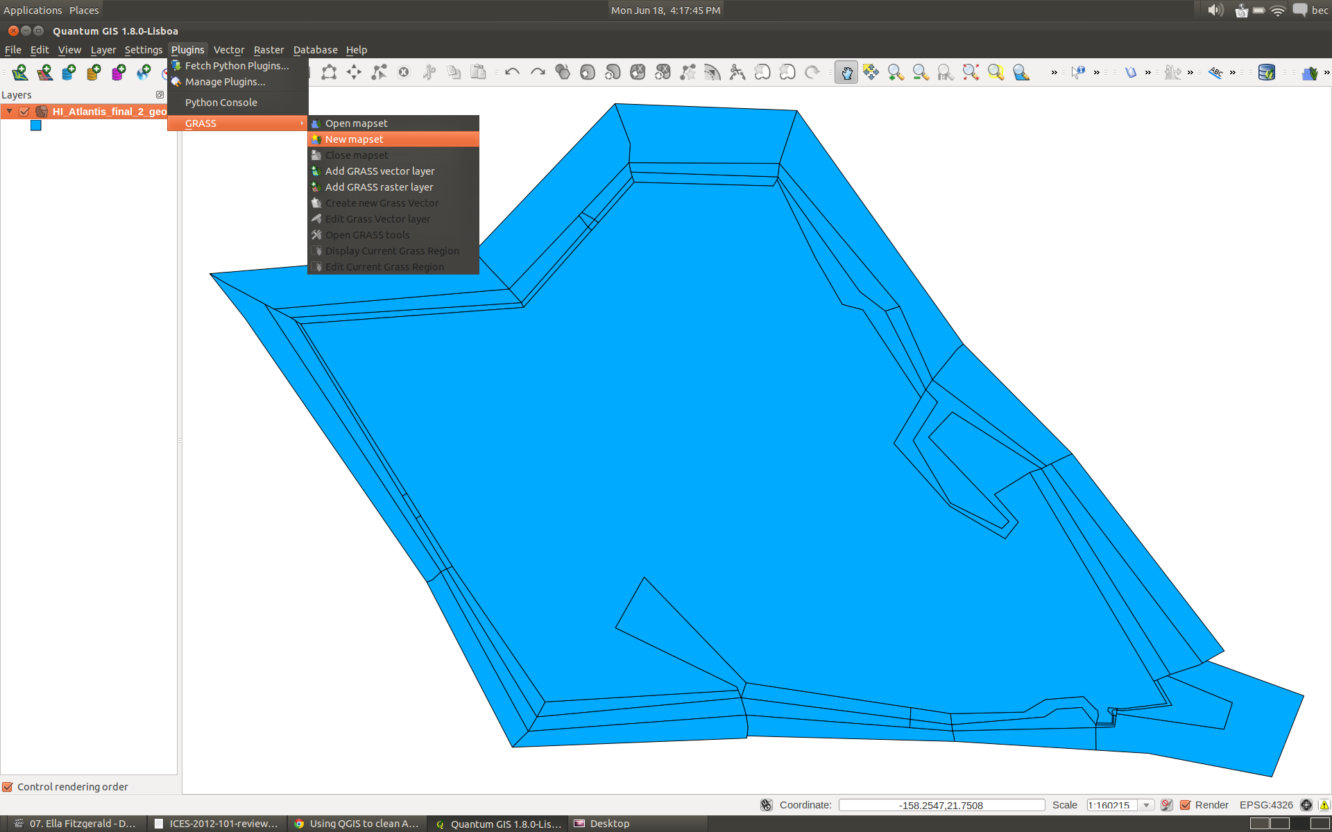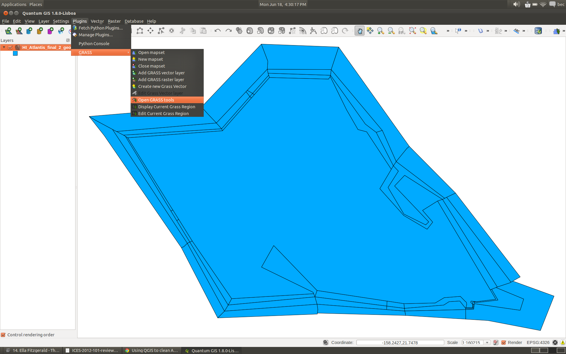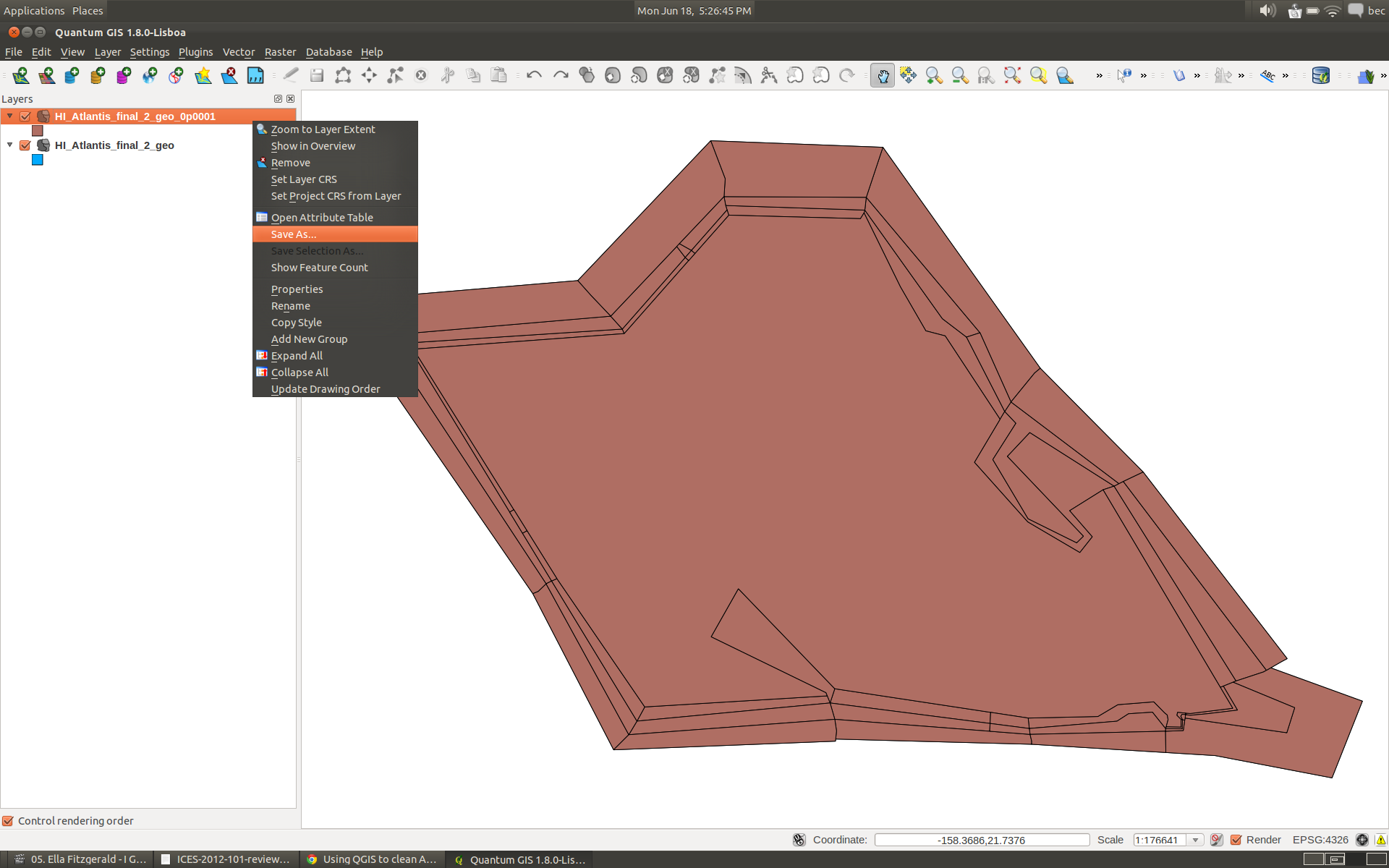 In this example the magic snapping tolerance is 0.0001. Once you are done view the add the newly created map (HI_Atlantis_final_2_geo_0p0001) to the canvas ready for export.