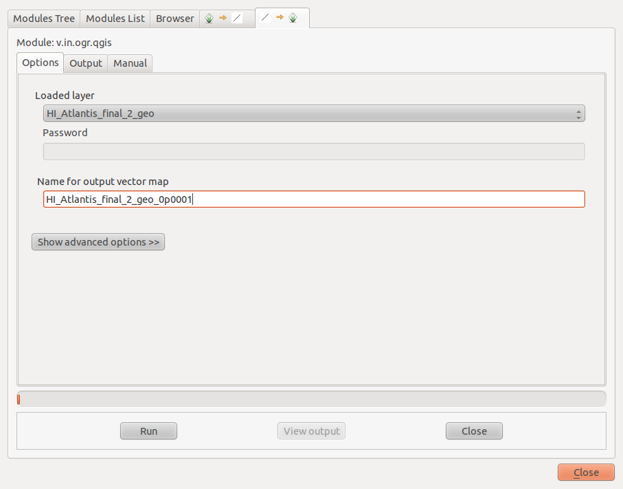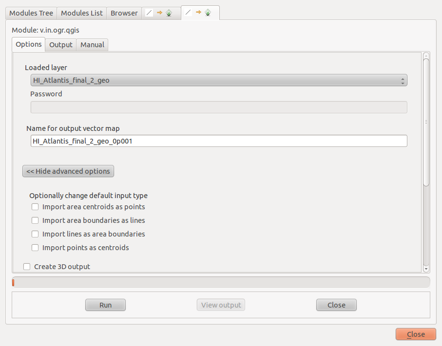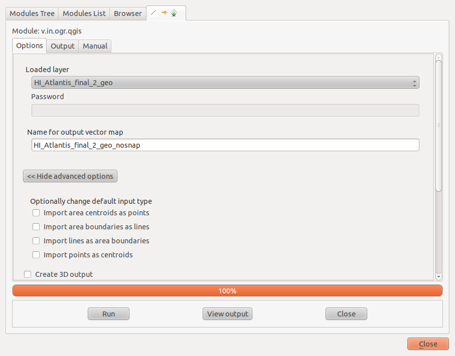 Import the HI_Atlantis_final_2_geo.shp shapefile into GRASS.
