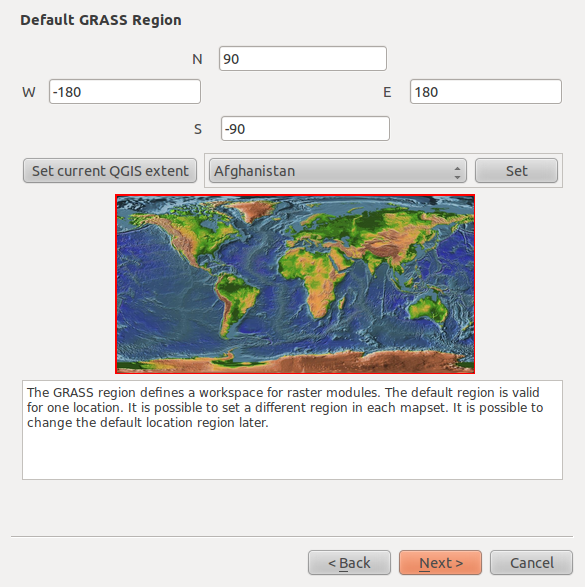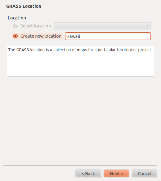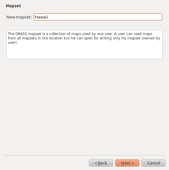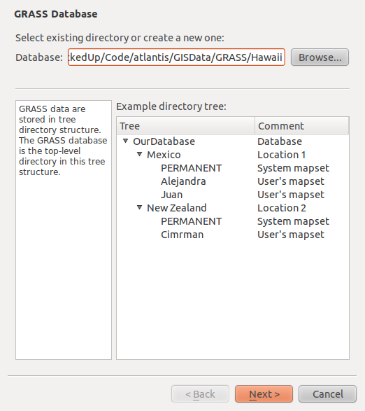 On the first pop-up window enter the directory you want to store your mapset files. Its a good idea to store the GRASS files in a separate folder to your model shapefiles.